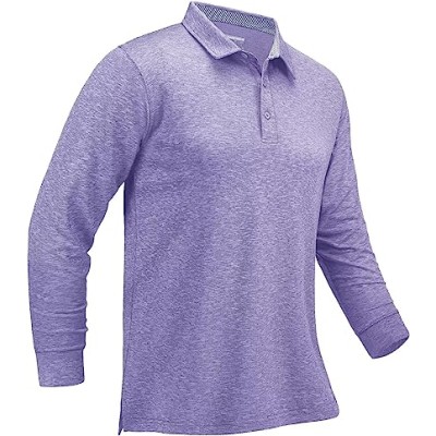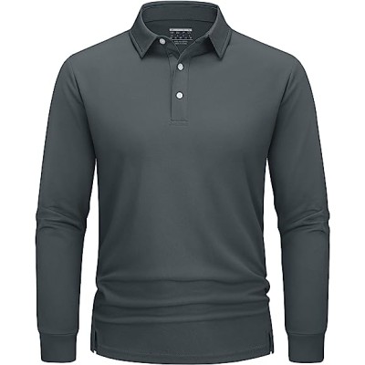 TACVASEN Men's Golf Polo Shirts Quick Dry Moisture Wicking Lightweight Casual Long Sleeve Shirt