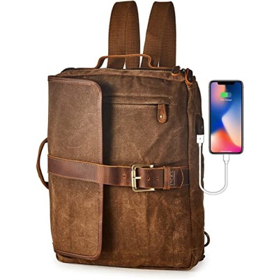 BRASS TACKS Leathercraft Vintage Waterproof Waxed Canvas Convertible Laptop Messenger Backpack