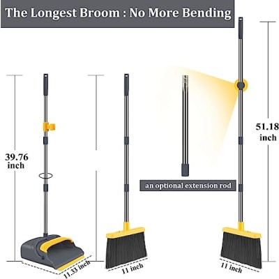 Yocada Broom and Dustpan Set Upgrade 52" Long Handle Upright Stand Up Dustpan