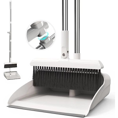 TreeLen Long Handle Broom and Dustpan Set,Upright Dust Pan Combo for Home, Kitchen