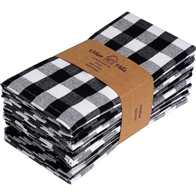 Urban Villa Dinner Napkins Buffalo Checks Cloth Napkins Set of 12 Black/White Color Checks