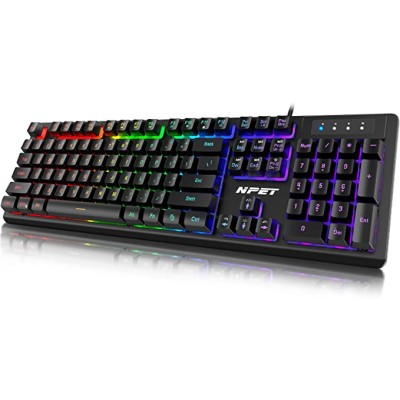 NPET K10 Wired Gaming Keyboard, LED Backlit, Spill-Resistant Design, Multimedia Keys