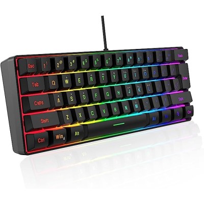 DGG K60 61 Keys RGB Backlit 60% Wired Gaming Keyboard, Ergonomic Waterproof Mini