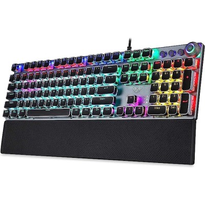 CC MALL Gaming Mechanical Keyboard, Metal Panel104 Anti-ghosting Keys,Brown Switches