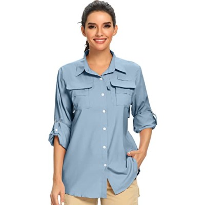 Women's UPF 50+ UV Sun Protection Safari Shirt, Long Sleeve Outdoor Cool Quick Dry Fishing Hiking