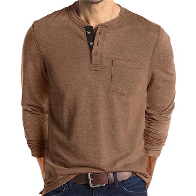 Lexiart Mens Fashion Henley Shirts Long Sleeve Button Cotton T-Shirt with Pocket