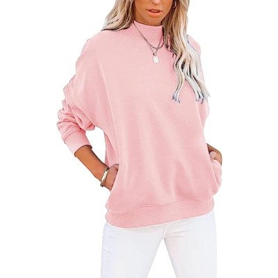 Minclouse Women's Casual Long sleeves Sweatshirt Tops Basic Loose Fit Mock Turtleneck Lightweight Tunic Pullover